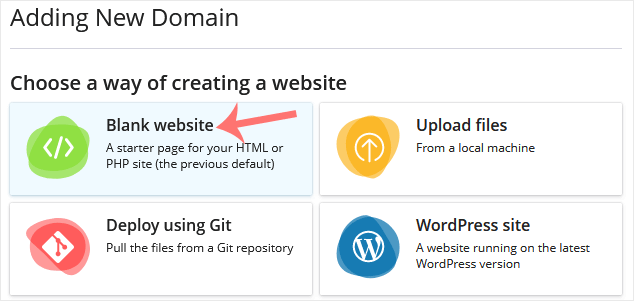 4. Please, choose Blank Website as an option.